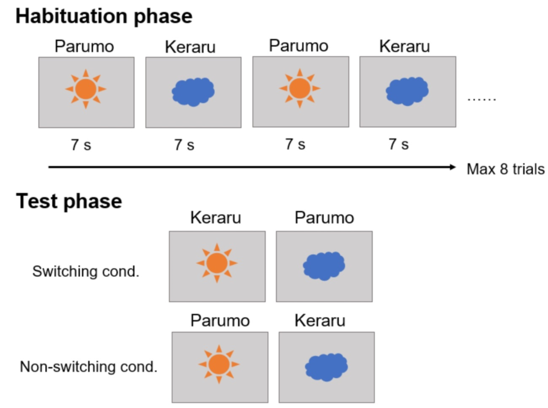 这是一个来自日本麻布大学的研究团队,他们找来了 31 只猫猫志愿者。在一开始的习惯阶段,研究者让猫观看电脑屏幕上的图片,并播放一个没有意义的单词:一个图片配的单词是“kararu”,另一个配的是“parumo”。